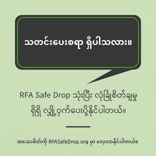 လွတ်လပ်တဲ့အာရှအသံ (RFA) အတွက် နှစ်စဉ် အတည်ပြု ထုတ်ပေးနေကျ ရန်ပုံငွေတွေကို ၂၀၂၅ ခုနှစ် မတ်လ ၁၅ ရက်နေ့ကစပြီး ဒေါ်နယ်ထရမ့် ဦးဆောင်တဲ့ အမေရိကန်အစိုးရက ရပ်ဆိုင်းဖြတ်တောက်ဖို့ ဆုံးဖြတ်လိုက်ပါတယ်။ RFA ရဲ့ ရန်ပုံငွေ မသေချာ မရေရာမှုတွေကြောင့် မြန်မာပိုင်းအစီအစဉ် ထုတ်လွှင့်မှုတွေကို ရပ်နားထားရတော့မှာဖြစ်ကြောင်း လေးစားစွာ အသိပေးအပ်ပါတယ်။ RFA မြန်မာပိုင်းအစီအစဉ်ကို နှစ်ပေါင်းများစွာ နားဆင်ခဲ့ကြတဲ့ ပရိသတ်တွေရဲ့ အားပေးမှုနဲ့ ယုံကြည်မှုအတွက် ကျေးဇူးတင်ရှိကြောင်း အထူးအလေးထား ဖော်ပြလိုပါတယ်။ RFA မြန်မာပိုင်းအစီအစဉ်အနေနဲ့ တစ်နေ့နေ့မှာ ပရိသတ်တွေထံ ပြန်လည်ရောက်ရှိလာလိမ့်မယ်လို့ အလေးအနက် မျှော်လင့်ထားပါတယ်။