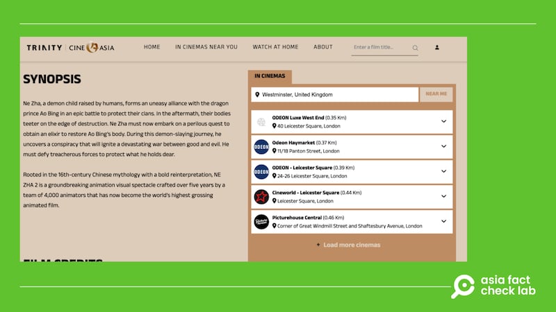 A claim began to circulate in Chinese-language posts that the Chinese animated film “Ne Zha 2” has been banned in Europe.